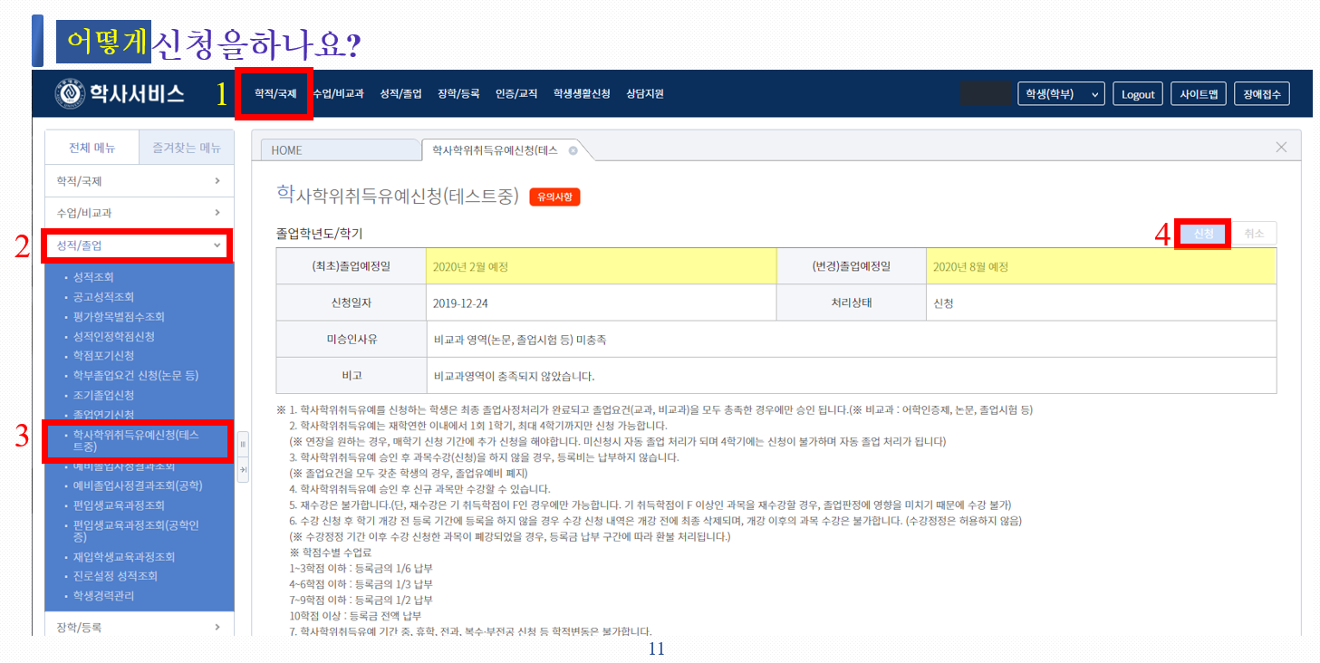 2020년 8월 학부생 졸업요건 및 졸업연기 신청기간 안내